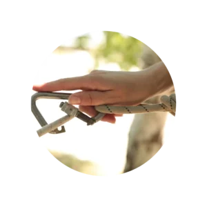 - Les dégaines : composées de deux mousquetons reliés par une sangle, elles permettent de relier la corde aux points d’ancrage.